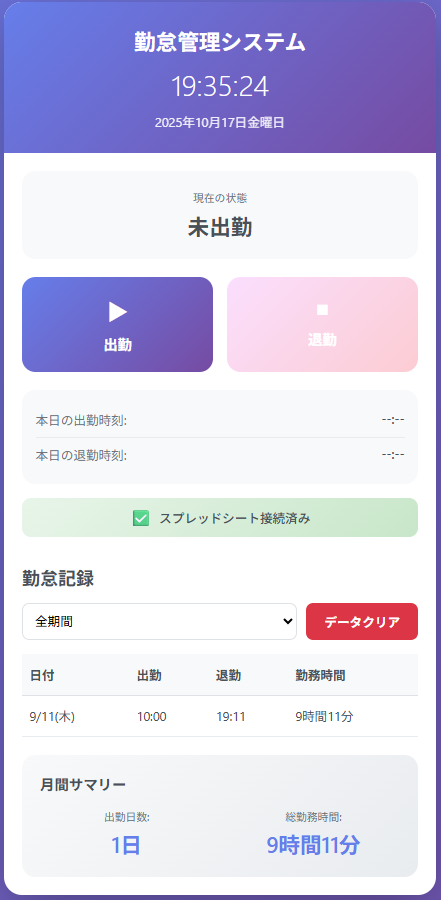 さらに、スプレッドシートとの連携機能により、日々の勤務データを即座に保存・集計できます。