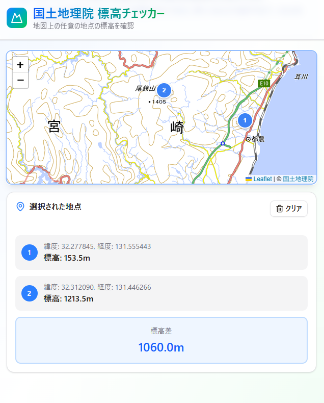⛰️ 地形の“高さ”が一目でわかる!AI制作「国土地理院 標高チェッカー」アプリが誕生!