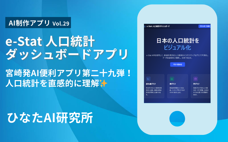 人口統計を瞬時に可視化!AI制作「e-Stat 人口統計ダッシュボード」アプリ公開| ひなたAI研究所 AI制作アプリ第29弾