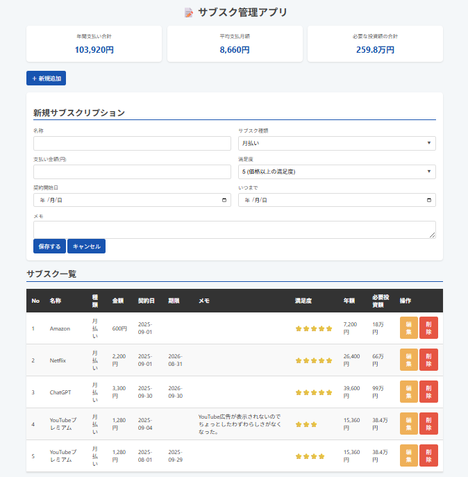 Geminiを使って開発された「サブスク管理」アプリは、日々のサブスクリプションを見える化する便利ツールです。