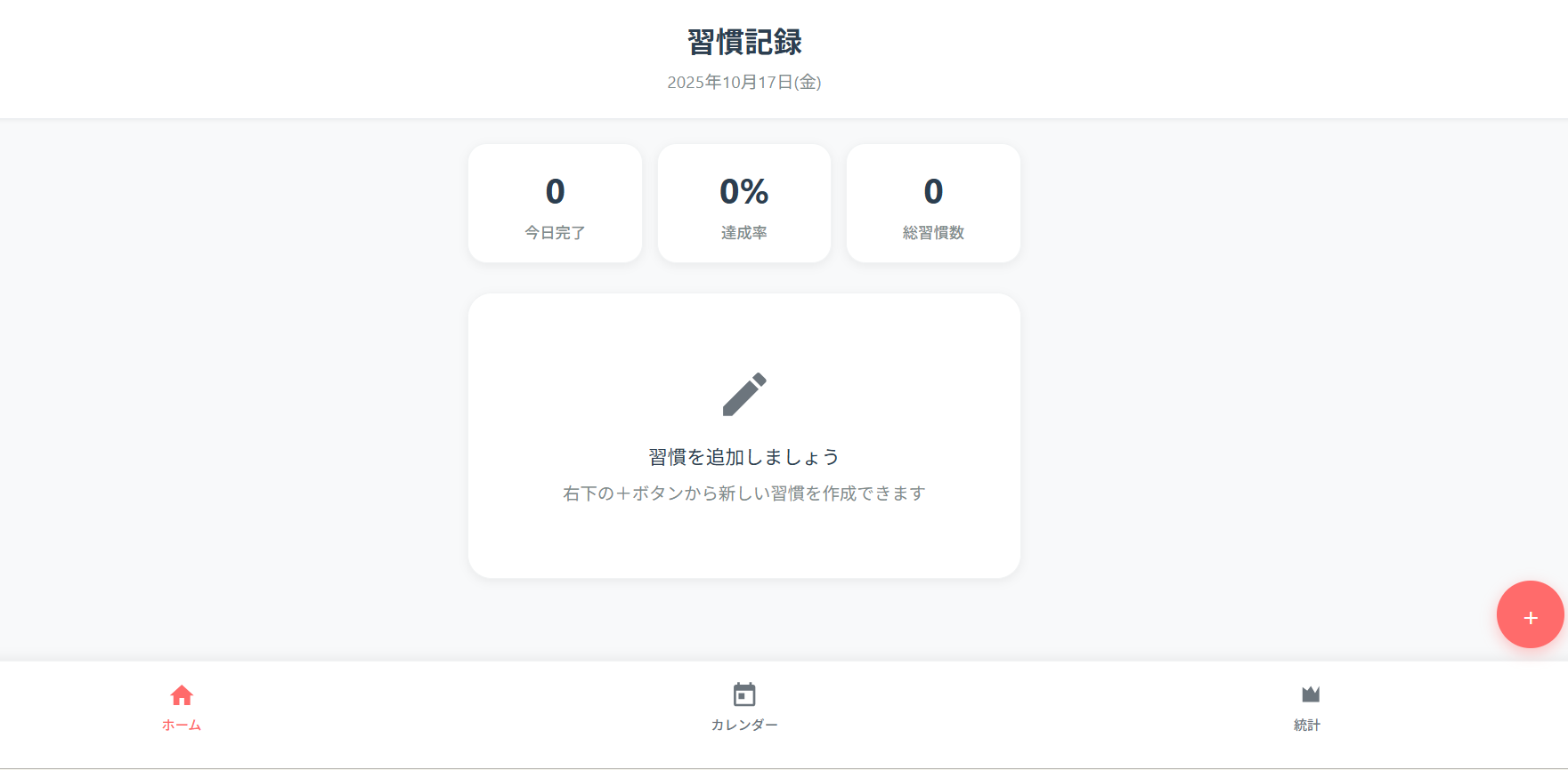 “今日完了”“達成率”“総習慣数”などを自動で集計してくれるので、どんな習慣もひと目で確認できます。