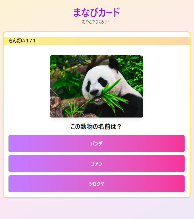 例えば、表示された動物の写真に「この動物の名前は?」とクイズ形式の問題を添えれば、可愛いフラッシュカードがその場で生成されます🖼️📚