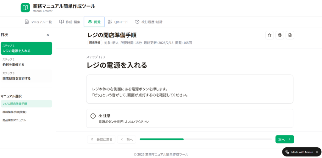 マニュアル作成 → 編集 → 共有 → 運用