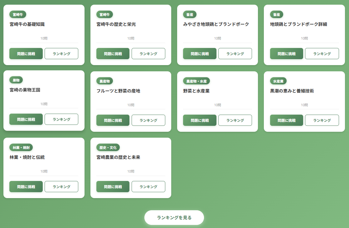 挑戦するたびに宮崎の食文化や農業の奥深さを知る“食育体験型クイズ”として楽しめます。