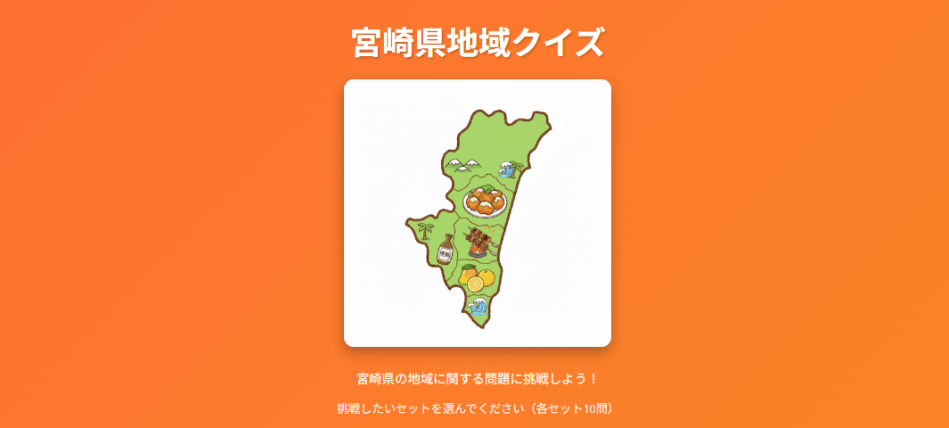 Claude+Geminiを活用して制作されたAI制作ゲーム第28弾、「宮崎県ご当地クイズ(地域ver)」が登場しました。