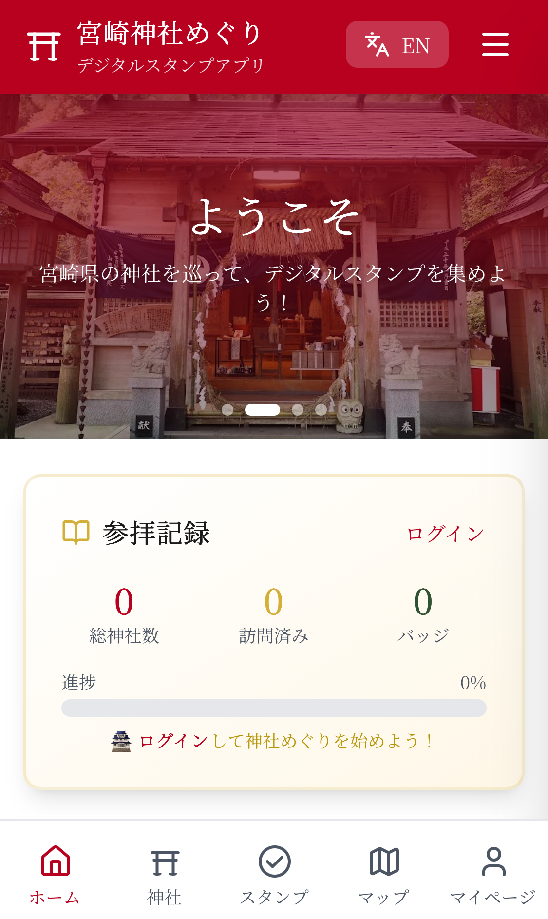 本作は、宮崎県内に点在する神社をスマホから手軽に巡れる“デジタル神社巡りアプリ”として設計されています⛩️✨