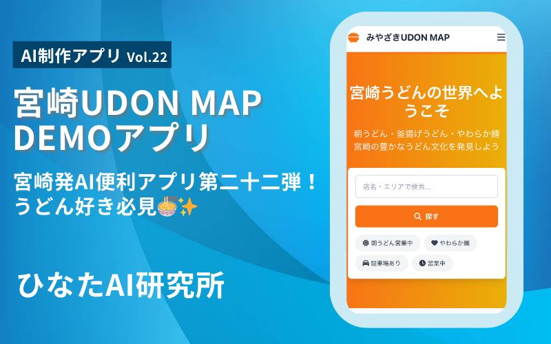 Gensparkで開発されたAI制作アプリ第22弾、「宮崎UDON MAP」DEMOアプリが公開されました✨