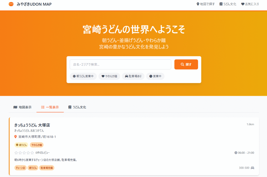 🍜 宮崎うどん文化を一望できる!「宮崎UDON MAP」DEMO版が登場!