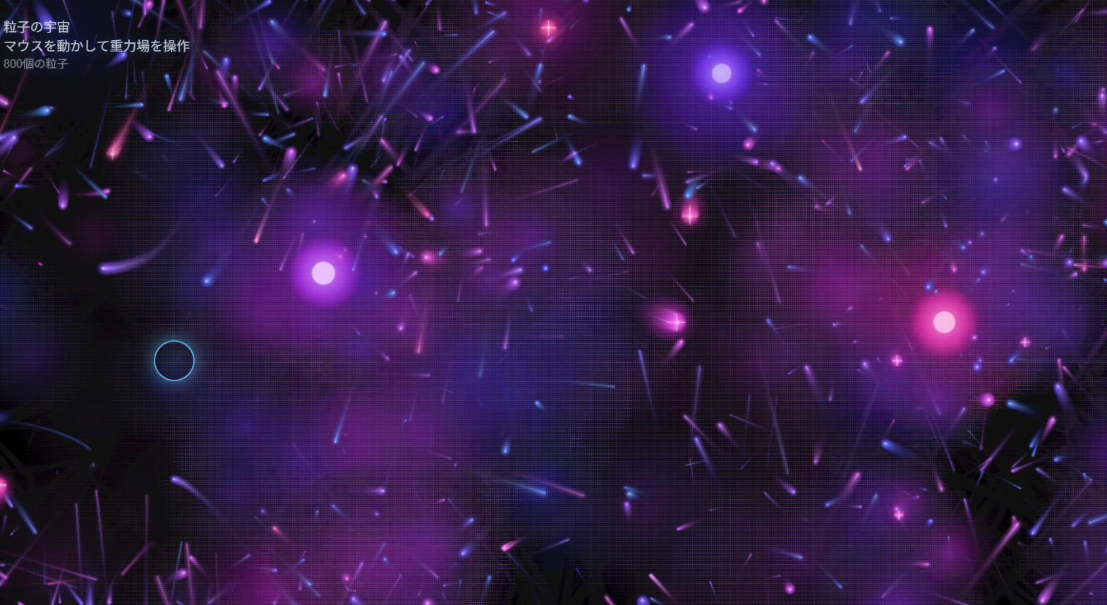 画面上を無数の粒子が漂い、マウスの動きに反応してふわりと逃げていく。