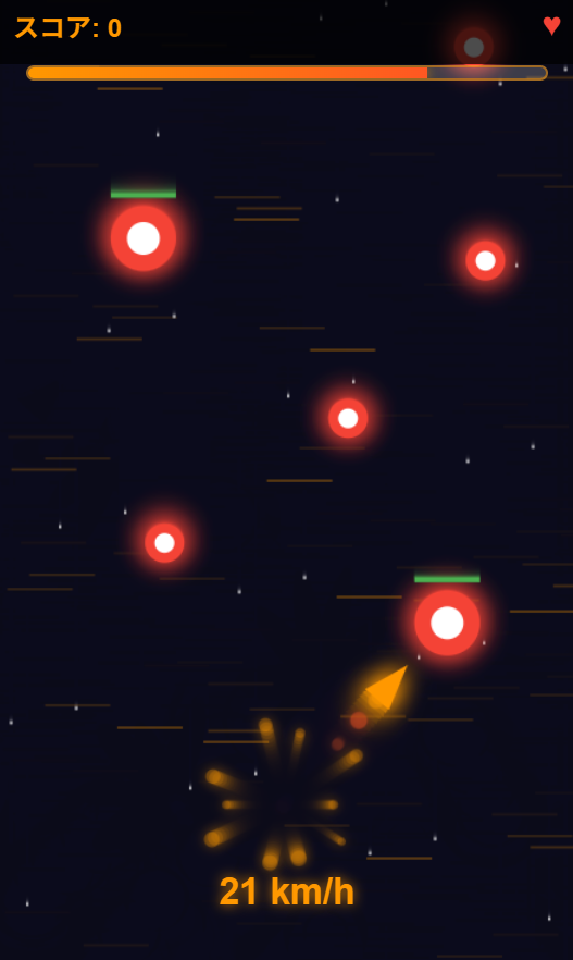 光の軌跡や発光演出が宇宙空間の臨場感を高め、シンプルながらも視覚的に満足度の高い仕上がりです。