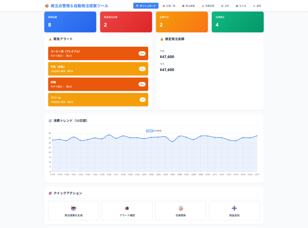📦 在庫切れ・発注忘れを未然に防ぐ!AI制作「発注点管理&自動発注提案ツール」アプリが登場